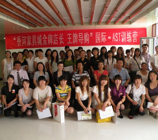 2010年7月27日,“香河家具城金牌店長(zhǎng) 王牌導(dǎo)購——國(guó)際•AST第九十六屆訓(xùn)練營(yíng)”在香河家具城紅星美凱龍館6層會(huì)議室圓滿落幕.
