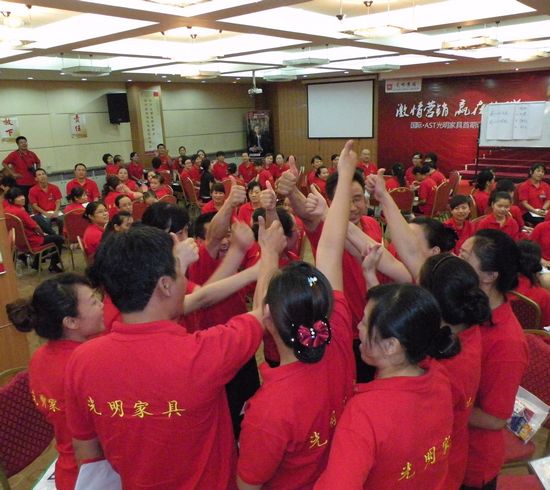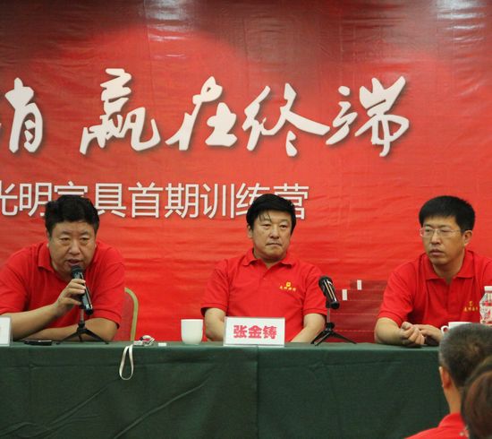 2010年9月16日2010年光明集團(tuán)股份有限公司激情營(yíng)銷 贏在終端國(guó)際•AST專業(yè)百零三屆暨光明家具首期訓(xùn)練營(yíng)在北京北農(nóng)酒店完美落幕!來(lái)自光明家具全國(guó)分公司的店長(zhǎng)、導(dǎo)購(gòu)共170多名學(xué)員參加了此次訓(xùn)練營(yíng)。光明集團(tuán)股份有限公司董事長(zhǎng)張金鑄先生在訓(xùn)練營(yíng)動(dòng)員會(huì)上面講到,集團(tuán)要發(fā)展,一定要靠學(xué)習(xí),學(xué)習(xí)一定要找專業(yè)的家具培訓(xùn)公司。這次學(xué)員們一定要在這次的培訓(xùn)大會(huì)上面學(xué)到知識(shí),運(yùn)用到家具銷售和店面管理當(dāng)中去。并對(duì)北京國(guó)富縱橫管理咨詢有限公司給予了極高的評(píng)價(jià)。光明集團(tuán)電子商務(wù)副總經(jīng)理王淑娟女士在開(kāi)班典禮上面講到,我們光明人要做到光明家具團(tuán)結(jié)一致、光明集團(tuán)永爭(zhēng)專業(yè),學(xué)習(xí)要有學(xué)習(xí)的態(tài)度,如果光明拒絕學(xué)習(xí),那么光明的競(jìng)爭(zhēng)對(duì)手永遠(yuǎn)不會(huì)。