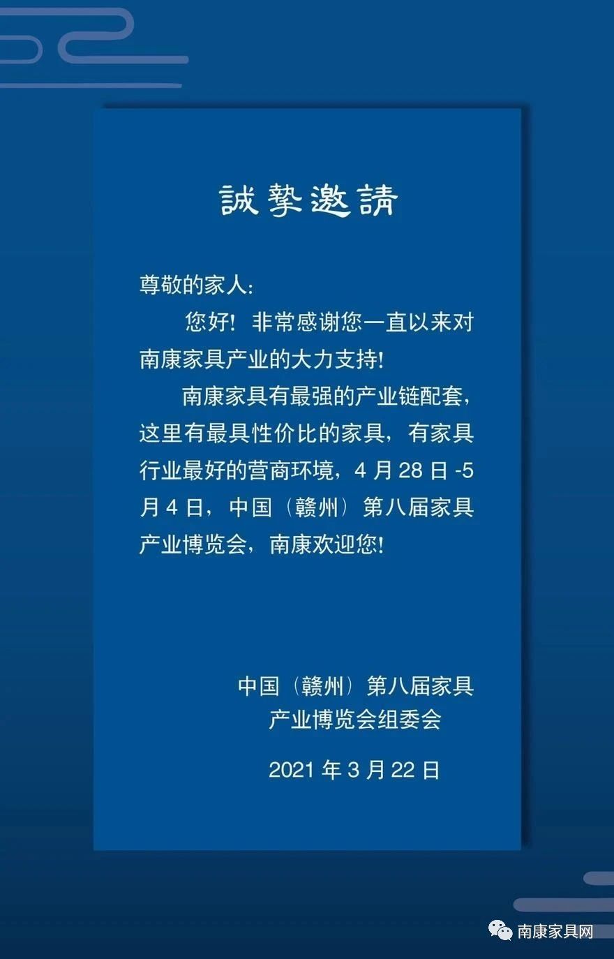 盛啟!2021年南康第八屆家具產業博覽會邀請函!